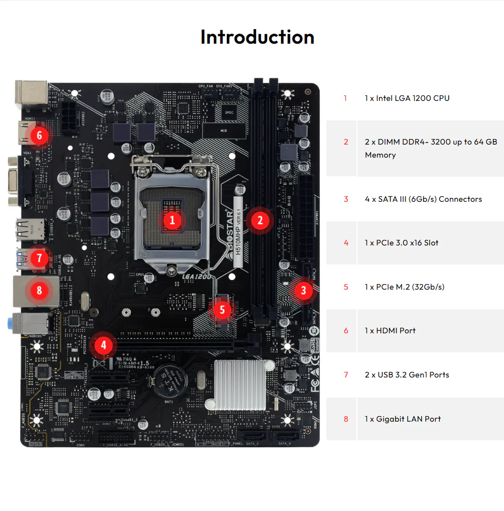 BIOSTAR H510MHP mATX Motherboard With 10th/11th Gen Intel CPU Support, DDR4 64GB RAM, PCIe 4.0 x16, M.2 32Gb/s, USB 3.2 Gen1, HDMI 4K, DX12 Graphics & 7.1 HD Audio