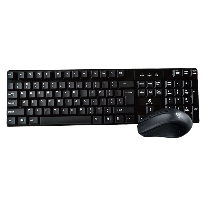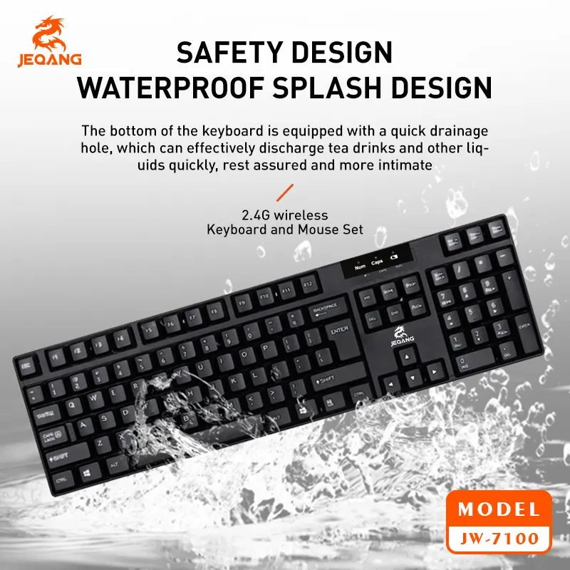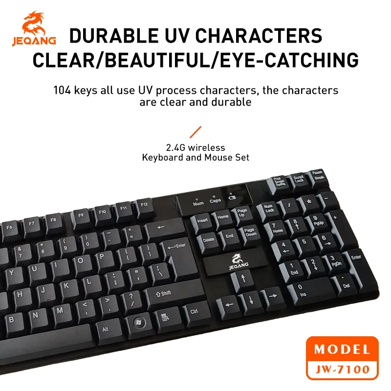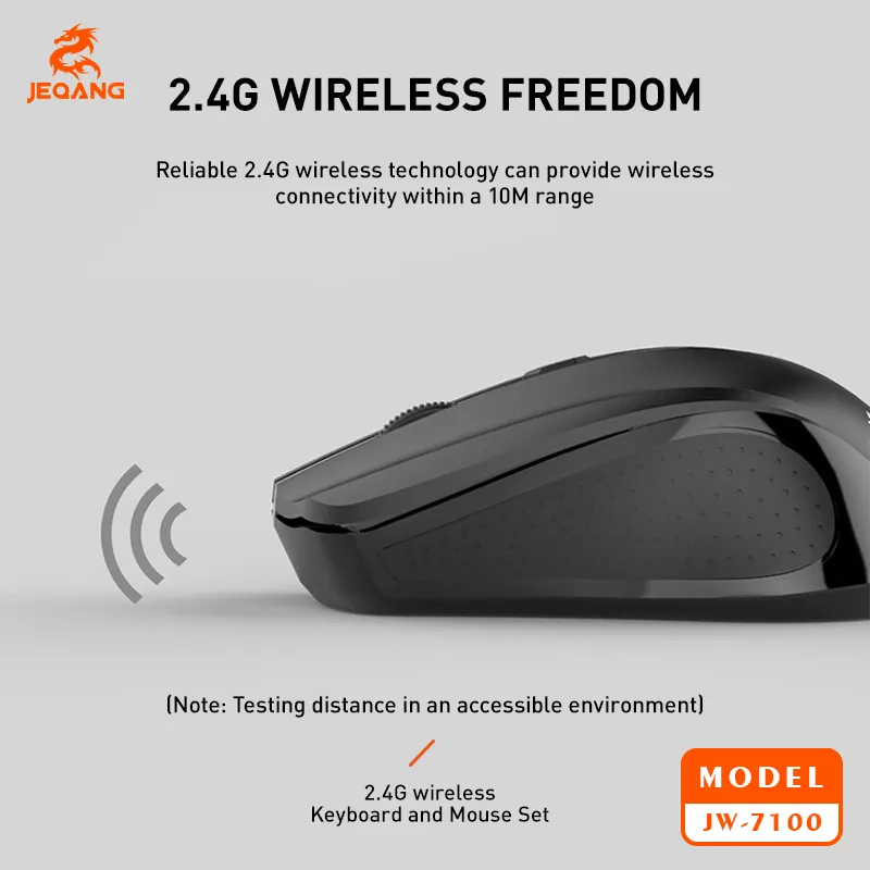 Jeqang JW-7100 Wireless Eng./Ara. Keyboard & Mouse – 2.4GHz Connection, Plug & Play, Concave Keys, 1 USB Receiver, Full System Compatibility, Ergonomic & Durable Design