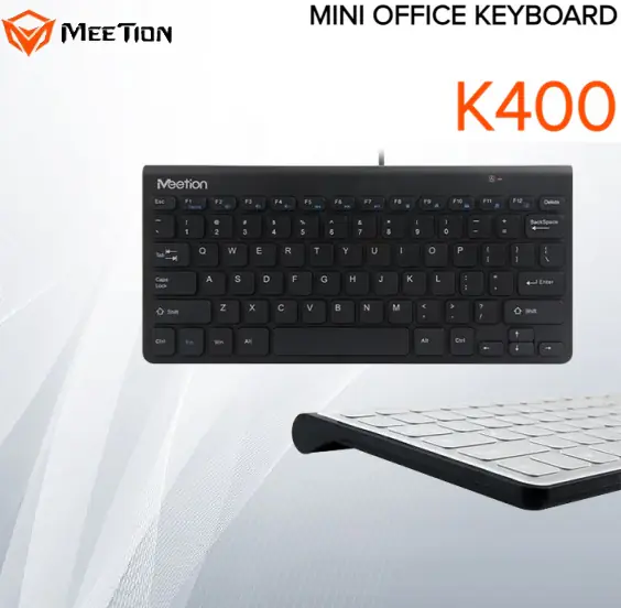 MEETION K400 Wired Mini Office Keyboard | Compact & Silent Design | 12 Multimedia Shortcuts | USB Plug & Play | Black | Waterproof & Durable